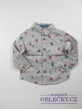 Šedá košile s obrázky pro kluky, dl rukáv, vel 6-9 m