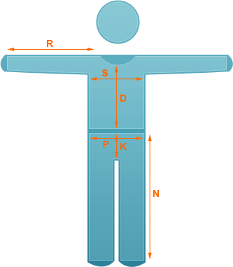 měřeno svisle, od ramenního švu, ke špičce na chodidle. Tato míra se bere především u overalů, bodíček a kombinéz. U overalů a kojeneckých kombinéz je míra včetně zakončené punčošky, u kombinéz s volnou nohou je míra po okraj nohavice.
